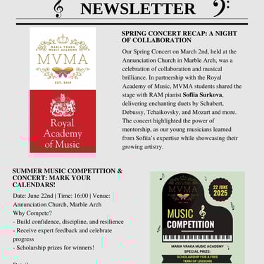 Stay in tune with the Maria Vraka Music Academy! Our newsletter is your backstage pass to exclusive updates, student spotlights, upcoming performances, and expert tips to elevate your musical journey.